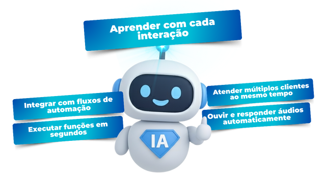 Traga agilidade e praticidade ao seu atendimento com a inteligência da automação, fluxos personalizados e agentes de IA que atendem seus clientes por você.